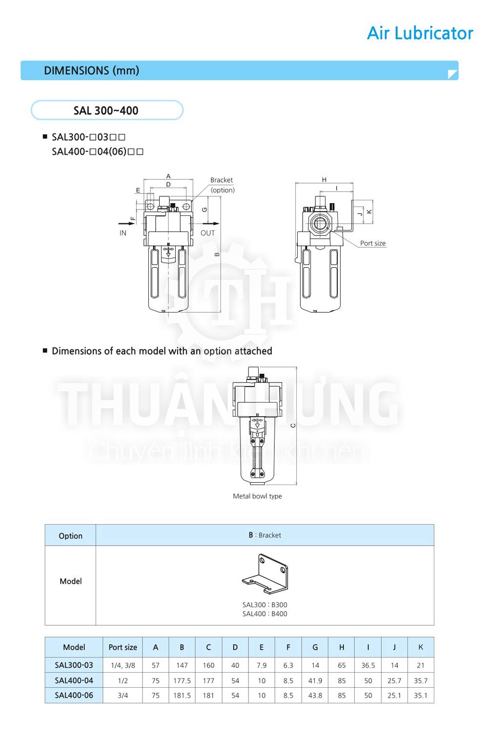 Bộ bôi trơn SKP SAL600-06 (ren 27mm) có 2 loại như sau: