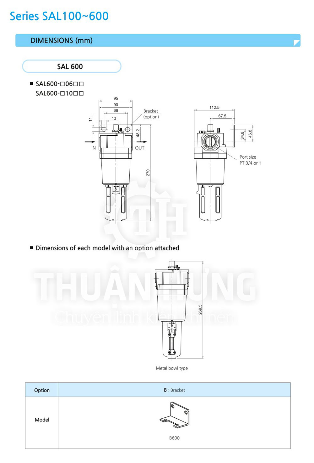 Thông số kỹ thuật của bộ bôi trơn (bộ chứa dầu) SKP SAL600-06