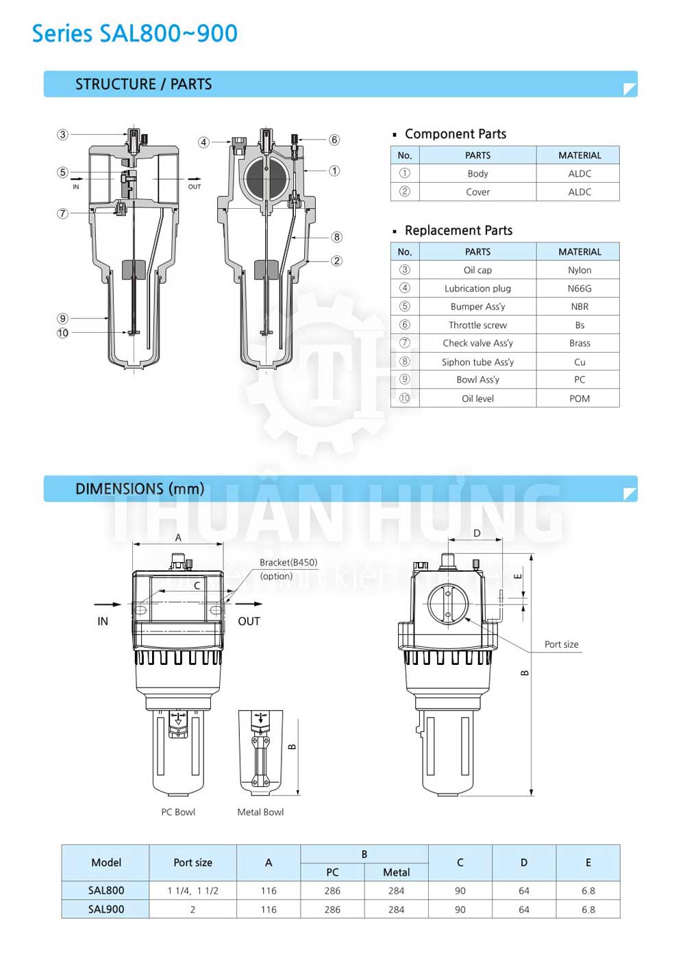 Thông số kỹ thuật của bộ bôi trơn (bộ chứa dầu) SKP SAL900-20