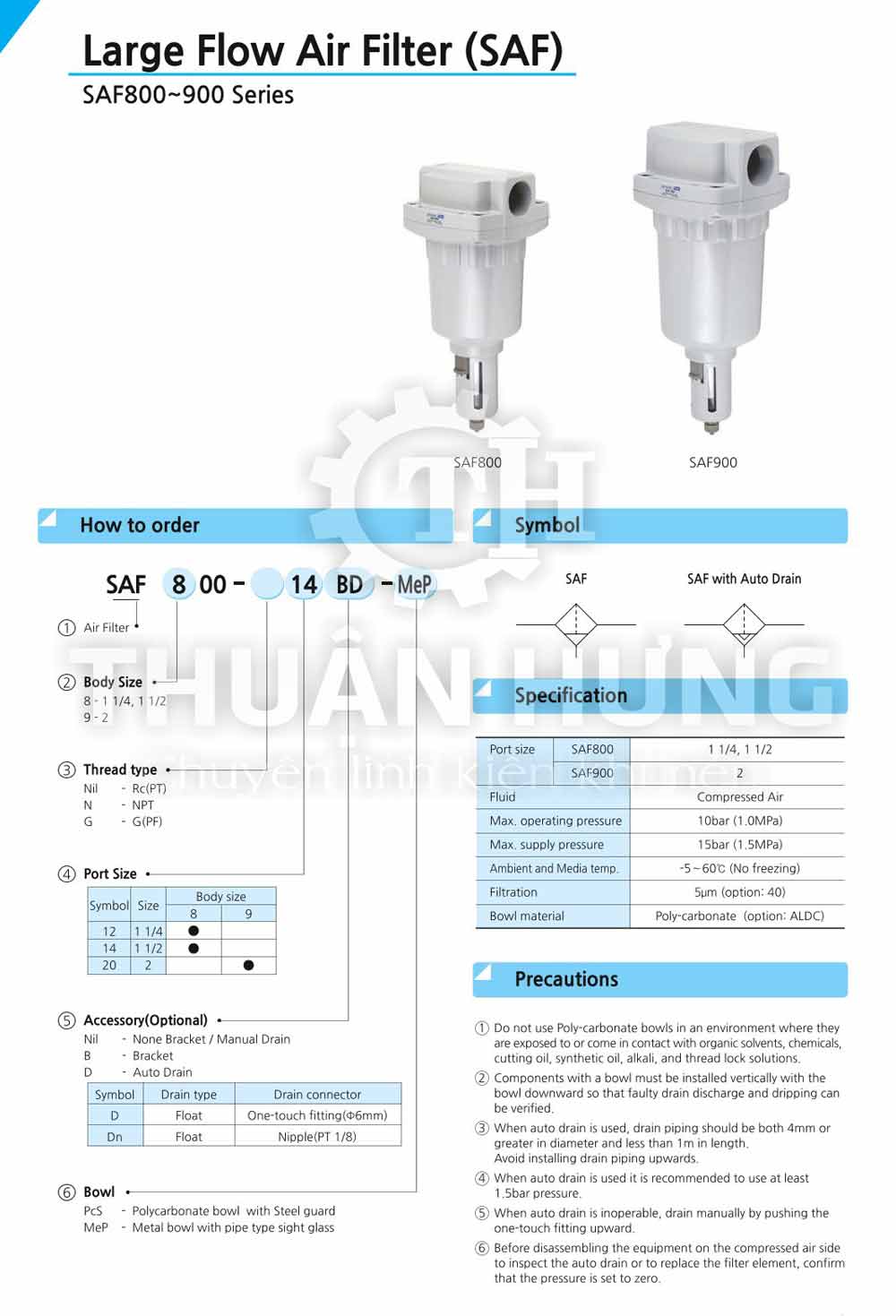 SAF800-14BD (độ lọc 10µm, kích thước cổng phi 49)