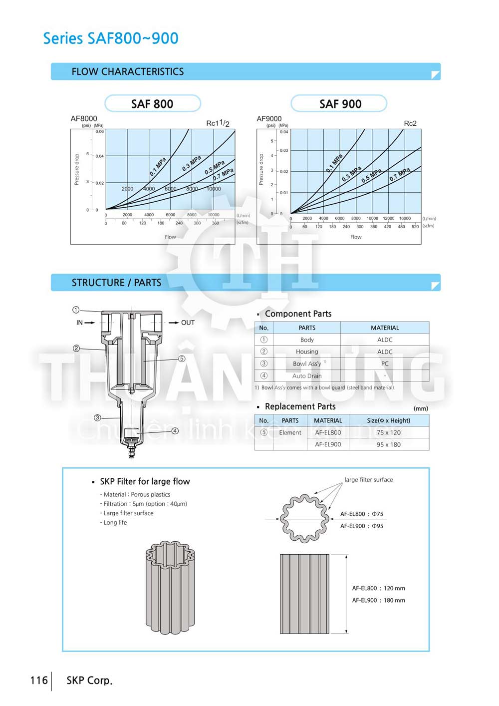 Các thông số kỹ thuật của bộ lọc khí đơn SKP SAF900-20, Phi 60