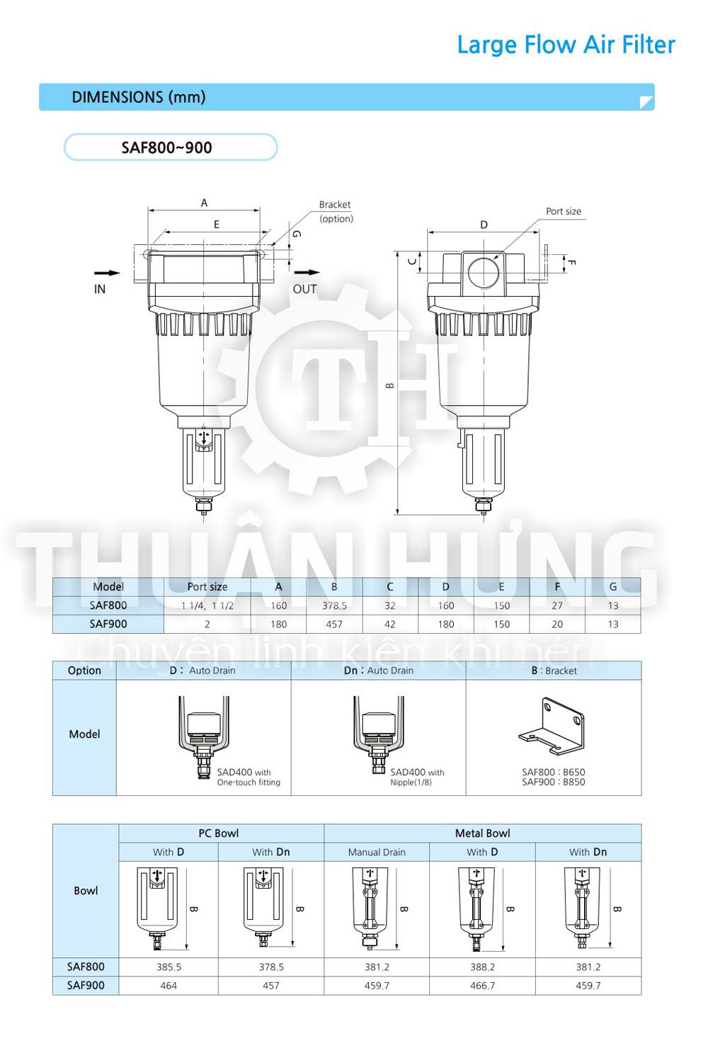 Bộ lọc khí nén SKP SAF có những kích cỡ khác như: