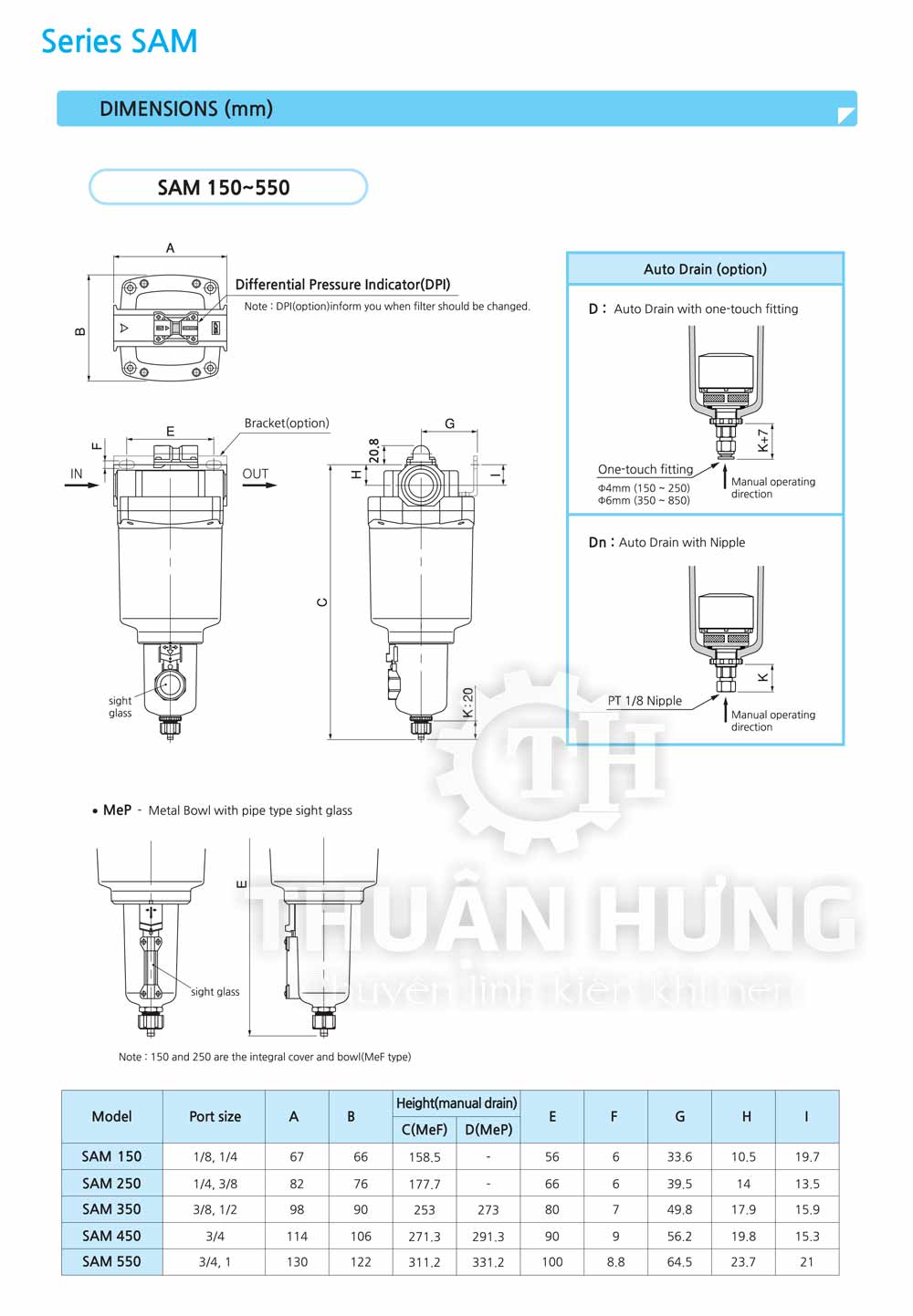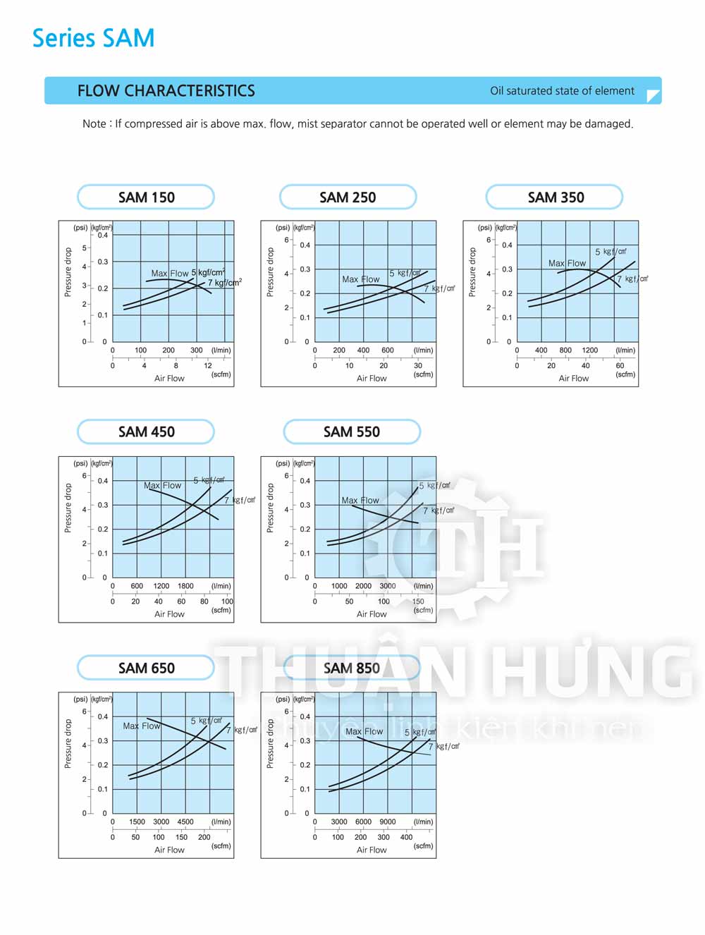 Thiết bị tách nước từ khí nén SAM có các model như sau: