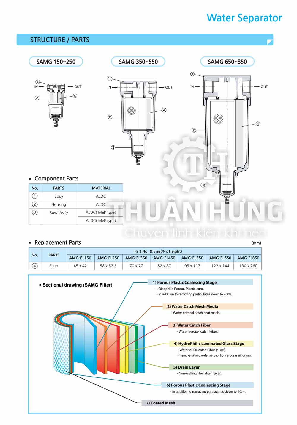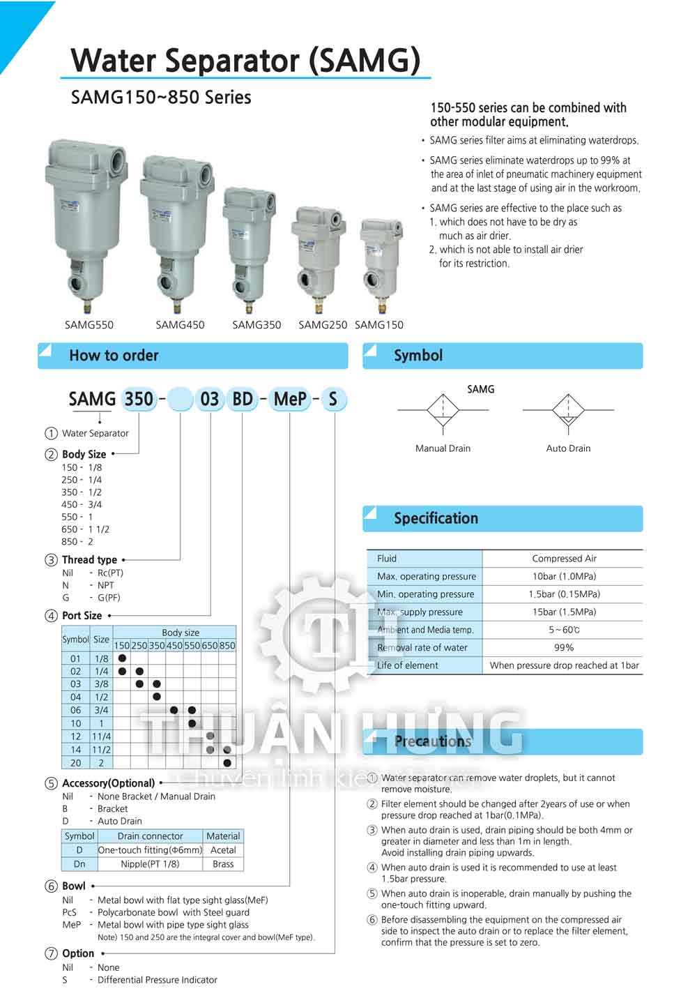 Thiết bị tách nước từ khí nén SAMG lọc tách nước đến 99% có các model như sau: