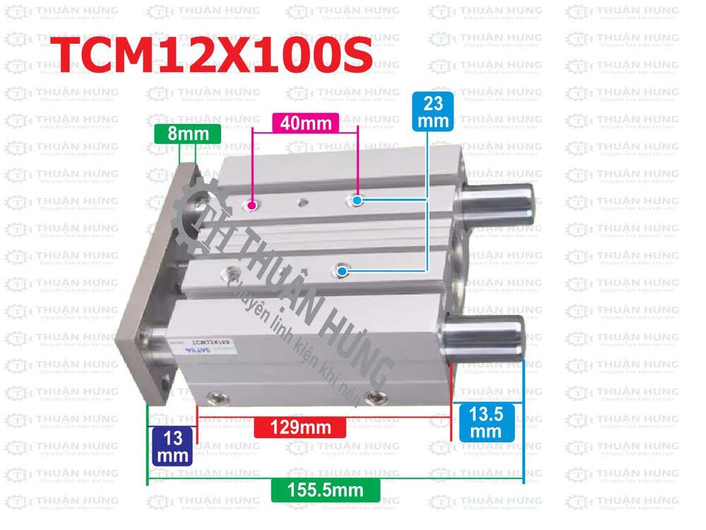 Kích thước của xi lanh 3 ty Airtac TCM12, TCM16, TCM20, TCM32, TCM40, TCM50, TCM63