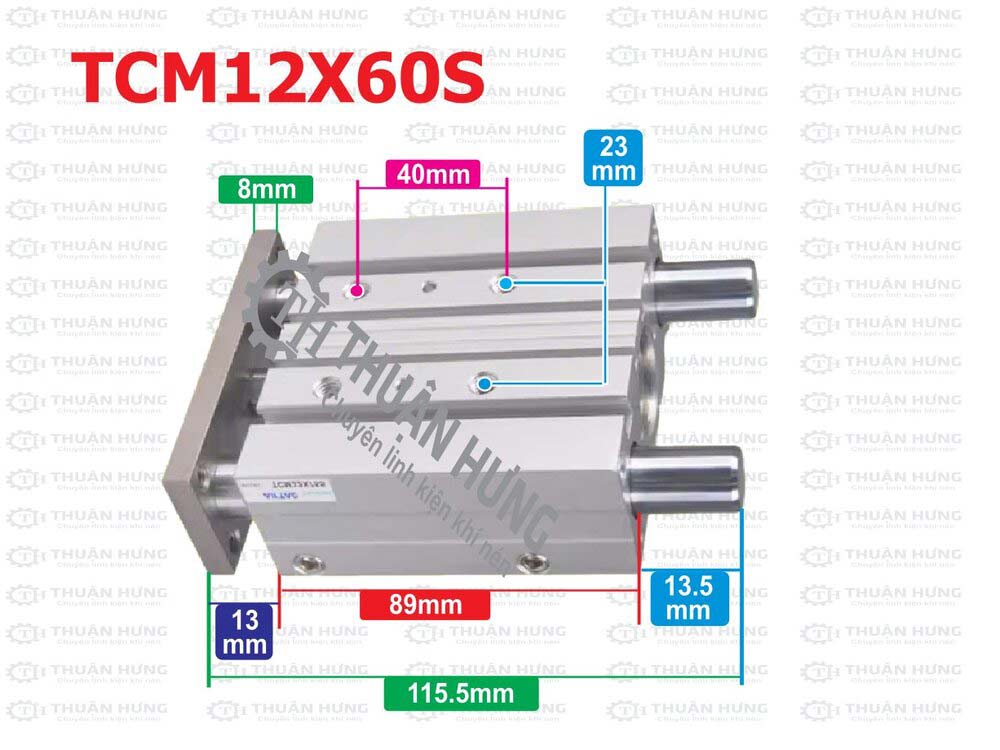 Kích thước của xi lanh 3 ty Airtac TCM12, TCM16, TCM20, TCM32, TCM40, TCM50, TCM63